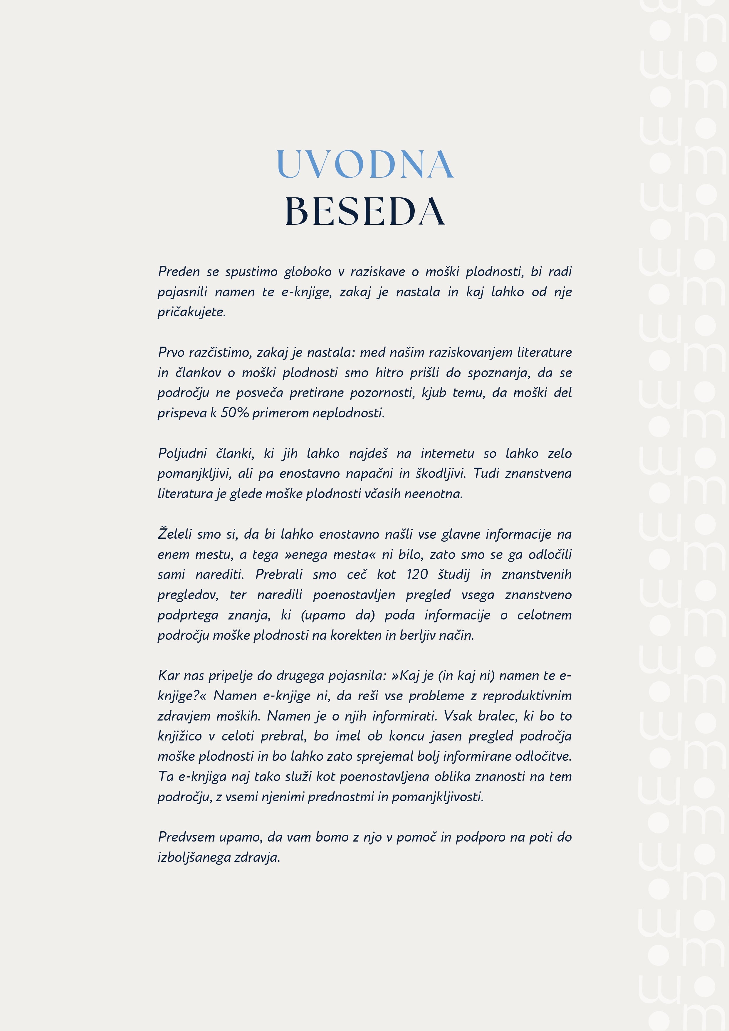 E-knjiga vsebuje vse kar morate vedeti o naravnem izboljšanju moške reproduktivnega zdravja in temelji na več kot 120 znanstvenih študijah.